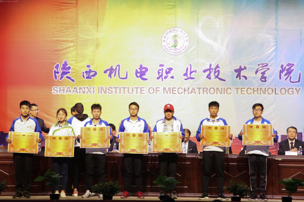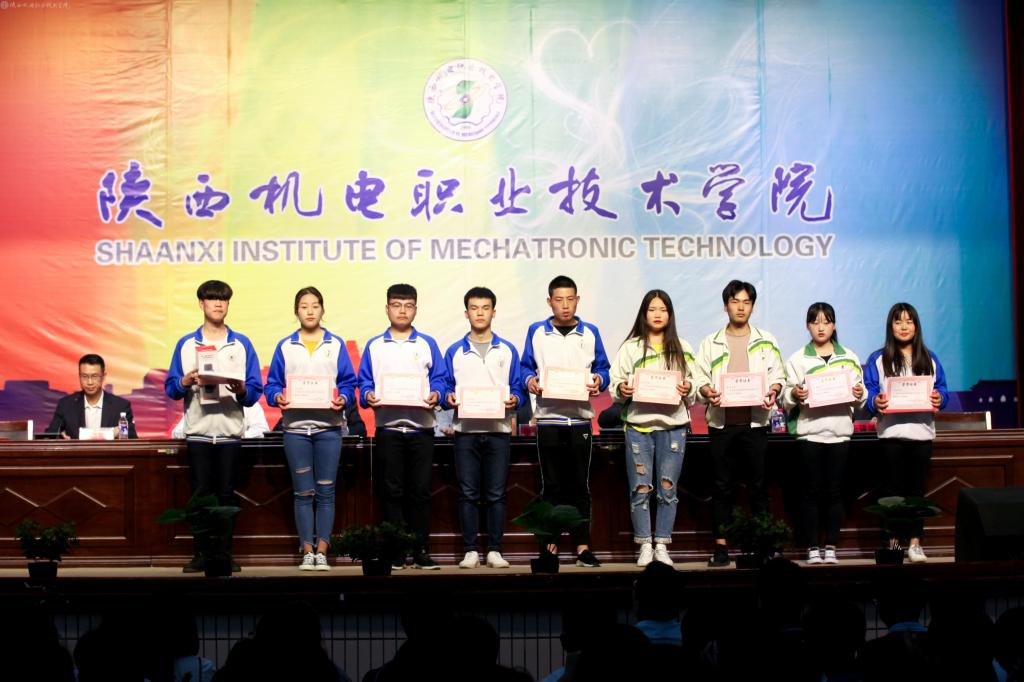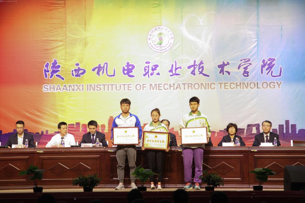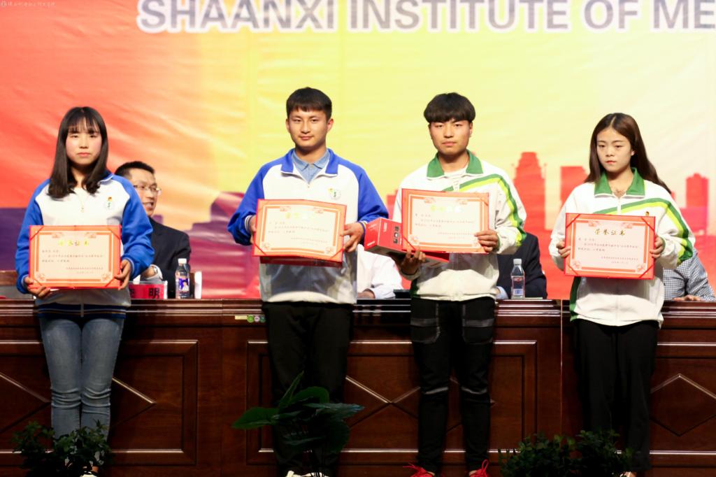 大会在庄严的国歌声中拉开帷幕,党委副书记、纪委书记邓新治宣读关于授予2017年度共青团工作优秀奖和先进团组织的决定;党委委员、院长助理赵争东宣读关于表彰2017-2018年度先进集体及先进个人的决定;学工部部长朱云洁宣读关于表彰2017年“学宪法讲宪法”演讲比赛优秀学生、优秀指导教师和优秀组织单位的决定;学生处关于表彰2018年“星级”文明宿舍的决定;教务处处长王建斌宣读陕西机电职业技术学院关于表彰奖励2018年微课教学比赛获奖教师的决定,并进行了颁奖。14会计动漫高职班喻思思同学代表受表彰的学生进行了发言。