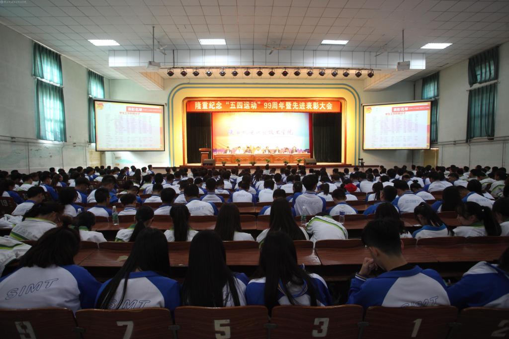 2018年5月3日下午,我院在大礼堂隆重召开“纪念五四运动99周年暨先进表彰大会",出席本次大会的领导有党委书记、院长伊逊智,党委副书记、纪委书记邓新治,党委委员、副院长张新堂,党委委员、副院长徐圣月,院长助理赵争东,学工部部长朱云洁,教务处处长王建斌。以及来自我院各级团支部的先进代表共计800余人参加了表彰大会,会议由团委书记李明主持。