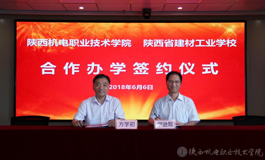 2018年6月6日,陕西机电职业技术学院与陕西省建筑材料工业学校在陕西机电学院汽车机电大楼四楼多功能厅举行中高职集团化办学签约仪式。学院党委书记、院长伊逊智,副院长邓新治、副院长张新堂等出席签约仪式。陕西省建筑材料工业学校副校长方学初一行参观学院并出席签约仪式。