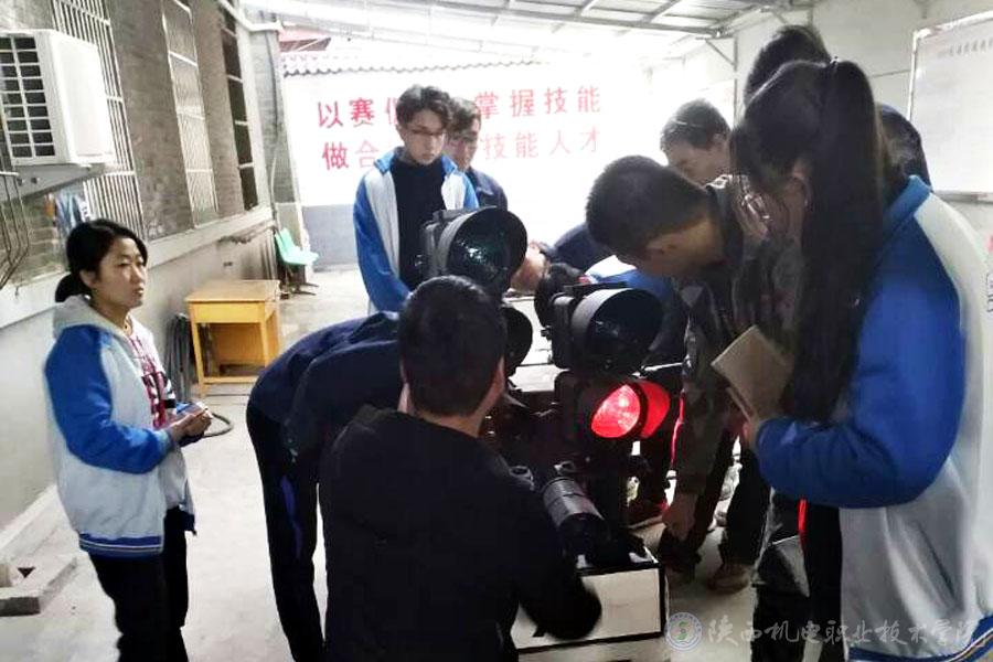 实训学生在老师指导下调整信号机显示距离