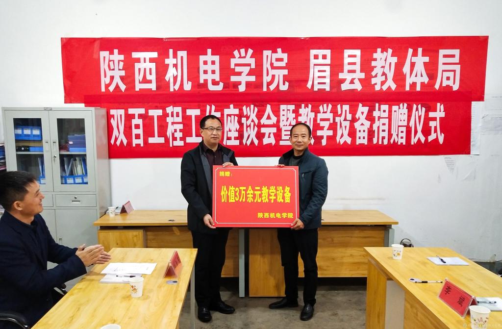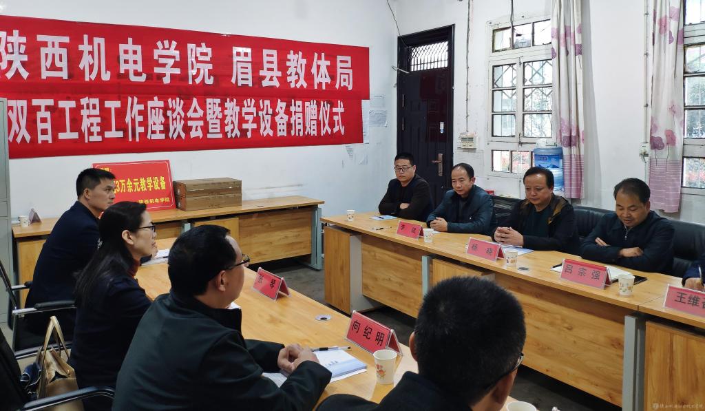 为教育扶贫办实事、改善眉县汤峪镇羊仓堡村基础教育教学条件。10月15日下午,学院党委副书记、院长向纪明,副院长张琴,院长助理赵争东,党委宣传部部长李明一行4人赴眉县开展“双百工程”工作座谈会暨教学设备捐赠仪式。眉县教体局党委副书记、副局长吕宗强,汤峪镇纪委书记王维召,汤峪镇教委教育专干王震飞,羊仓堡小学校长李斌等参加活动。会议由眉县学生资助管理中心主任杨晓主持。
