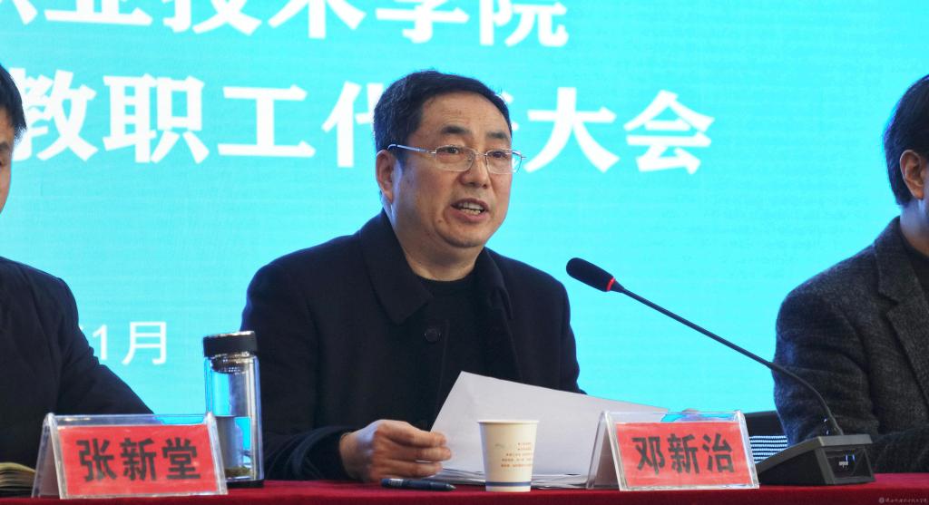 2020年1月7日下午,陕西机电职业技术学院在汽车机电大楼四楼视频会议室举行一届二次临时教职工代表大会。会议由党委副书记邓新治主持。