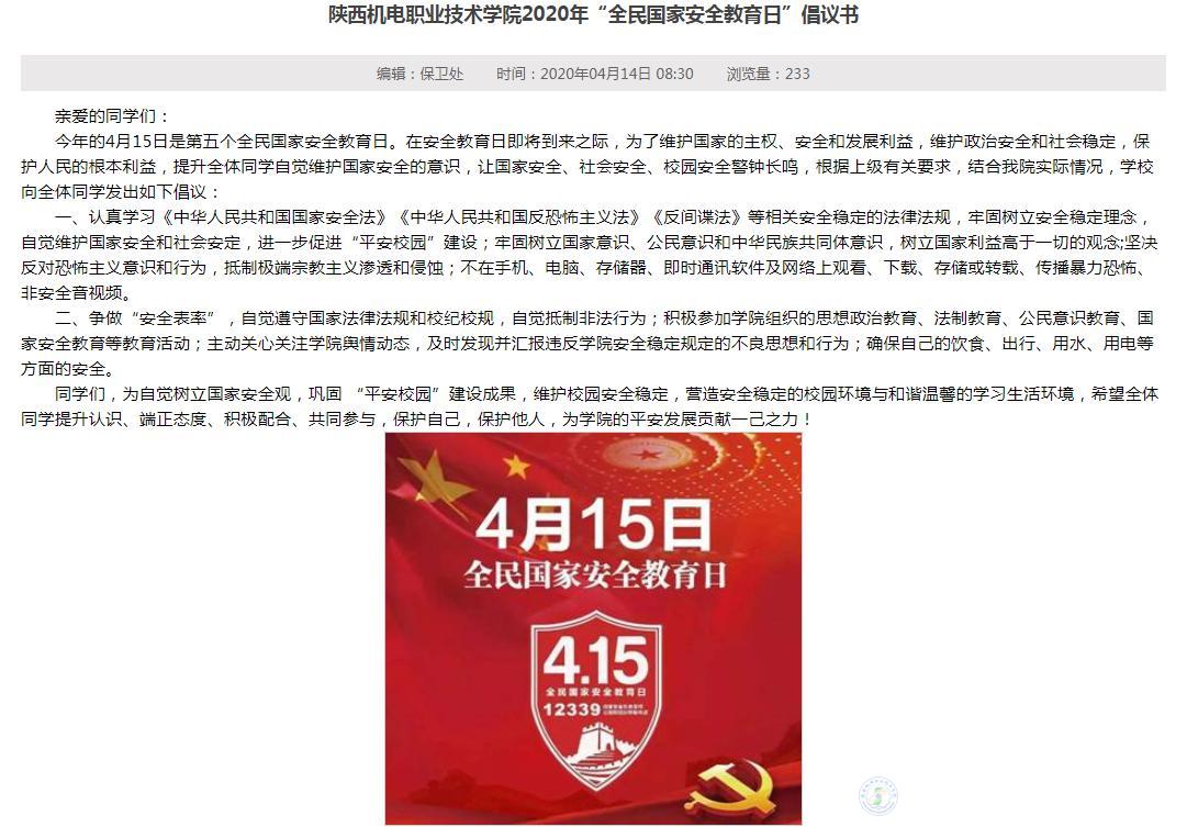 4月15日是我国第五个全民国家安全教育日,为深入贯彻习近平总书记总体国家安全观,提高师生国家安全意识,增强国家安全责任,结合当前疫情防控形势和工作实际,我校通过多种形式组织开展主题活动。