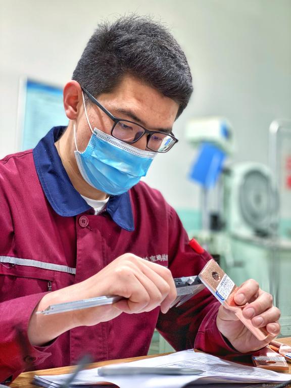 疫情发生以来,陕西省优秀共青团员、宝鸡市优秀共青团员、共青团十八大代表、宝鸡检测公司检测试验部检验员王海楠一直悬着一颗心。除了关注疫情的发展情况以外,他更放心不下的是公司里还未试验的接触网零部件。春节前夕,根据公司正常计划,苏州五号线、上海15号线、上海18号线等接触网零部件的试验工作安排至节后,可突如其来的疫情给试验按下了“暂停键”,一切工作戛然而止。可他心里明白,那一批接触网零部件是用于国家重点城市轨道交通工程中,很可能因为一根小小的螺栓就会导致整个工程延期。于是王海楠主动申请提前复工,最终他站在了复工复产的第一线。王海楠说:“疫情给试验按下了“暂停键”,现在复工复产了,我要和全体成员毫不犹豫地按下试验的‘快进键’。”复工复产后,在试验车间每天都能看到他和工友们戴着口罩共同忙碌的身影,透过他们坚定的眼神我们懂得了“责任”与“坚守”。他们放弃中午休息,第一时间高质量完成检验检测任务,确保了重点工程的安全施工。他们在复工复产的第一线,为打赢这场疫情防控的人民战、总体战、阻击战贡献了宝鸡检测的力量,为中国的电气化铁路事业保驾护航。