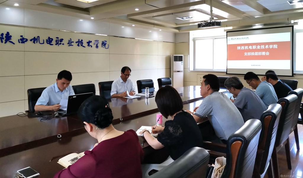 6月24日,陕西机电职业技术学院召开党支部换届支部换届工作部署会议。会议由学校党委书记伊逊智主持,党委委员、组织部部长赵争东、各党支部书记参加会议。