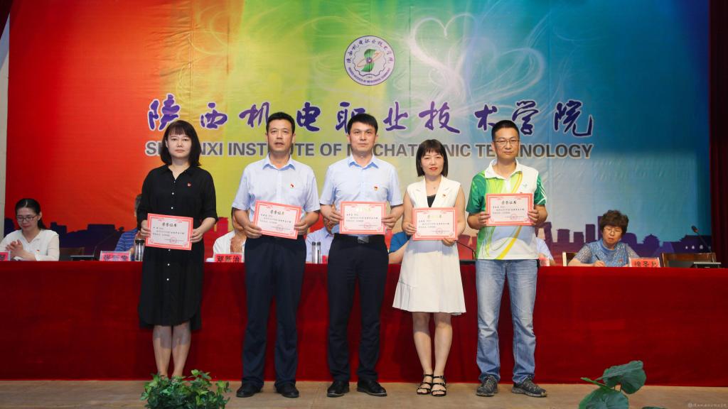 邓新治宣读《中共陕西机电职业技术学院委员会关于庆祝建党99周年暨表彰先进党支部、优秀共产党员、优秀党务工作者的决定》并颁奖,授予行政党支部等5个单位“先进党支部”,授予徐圣月等18名同志“优秀共产党员”称号,授予邢平等3名同志“优秀党务工作者”荣誉称号。
