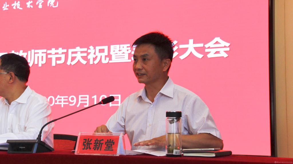 党委委员、副院长张新堂宣读2020年“优秀教学团队”表彰文件,授予信号系、新能源系、数学教研室、机械系、物联网系、经济管理系、建筑系、英语教研室等8个系(教研室)“优秀教学团队”荣誉称号,并给予表彰奖励。
