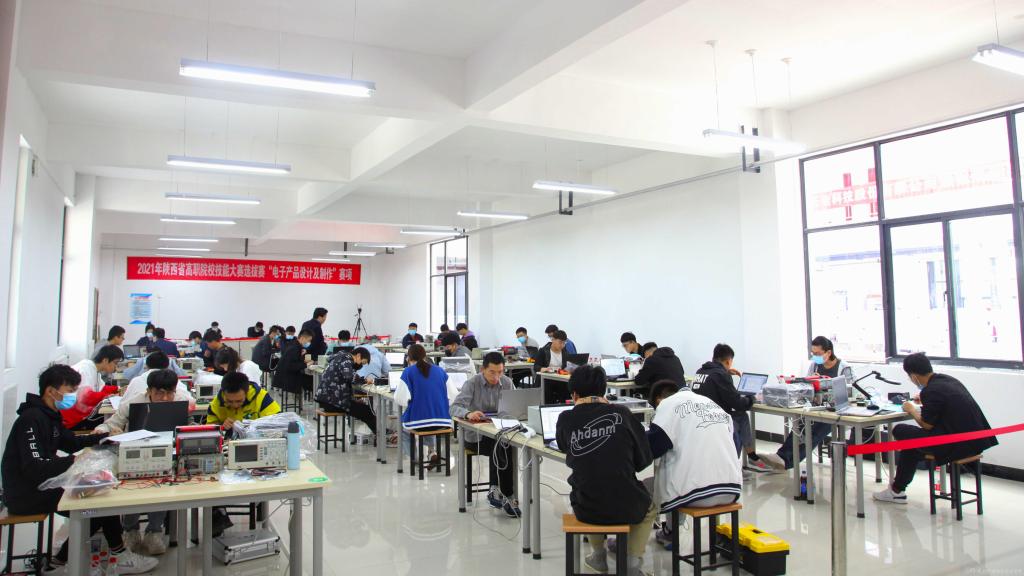 4月30日上午,由陕西省教育厅主办、我校承办的2021年陕西省高等职业院校技能大赛选拔赛“电子产品设计及制作”赛项在我校蟠龙校区博学楼顺利进行。此次赛项共有来自西安航空职业技术学院、杨凌职业技术学院、西安铁路职业技术学院、宝鸡职业技术学院和我校等12个省内高职院校的12支竞赛队36名选手同场竞技,比拼实力。