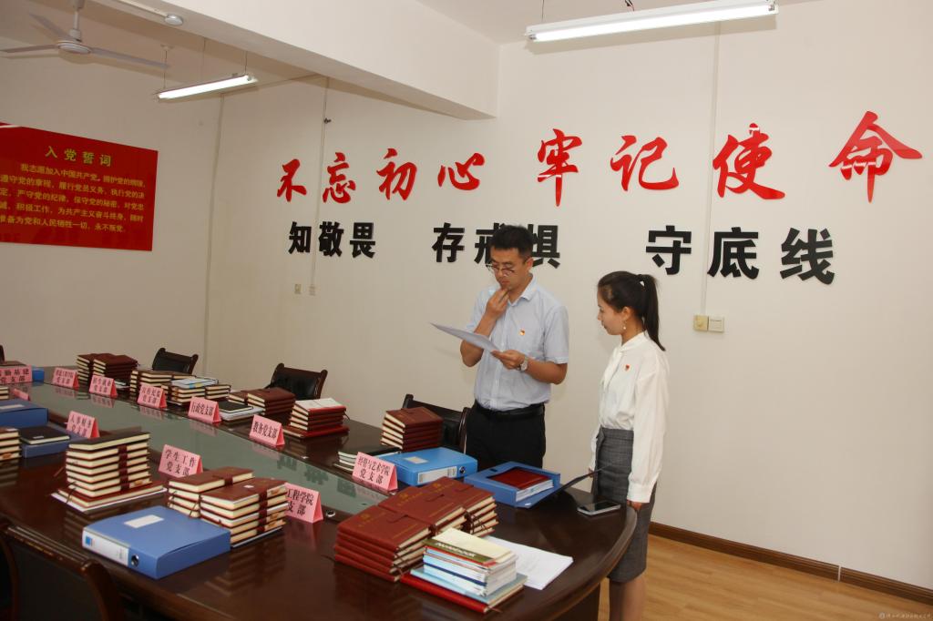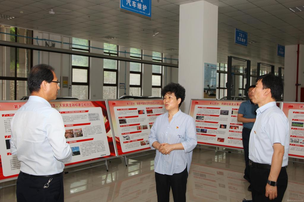 指导组一行查阅了学校党史学习教育相关资料,并参观了党史学习教育图片展。