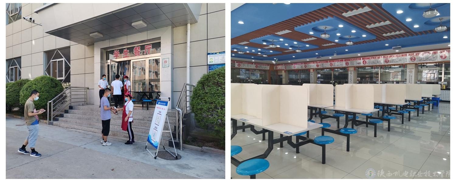 学生严格按照疫情防控要求,认真开展扫码测温工作,学生按照指定通道扫码测温进入餐厅,按照地面指引标识有序进行,保持安全距离,保证用餐安全。