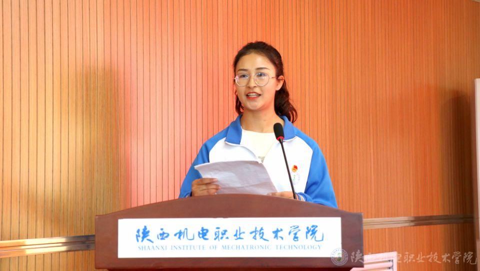 19高铁乘务1班陈志佳同学作为学生代表发言,电子与信息学院物联网系主任娄勇作为教师代表发言。