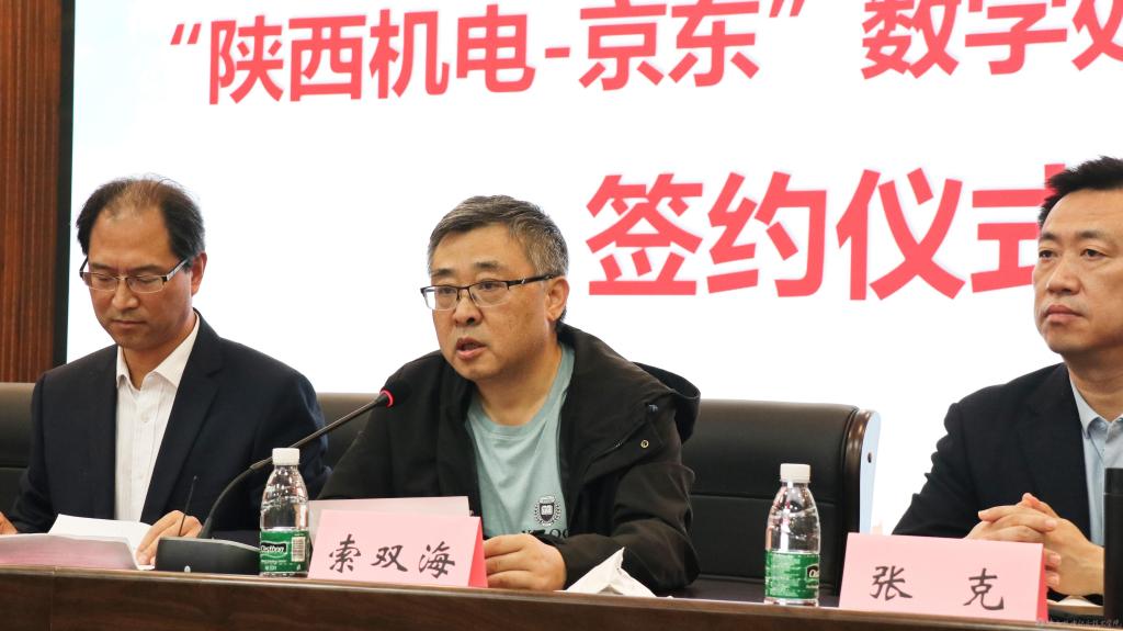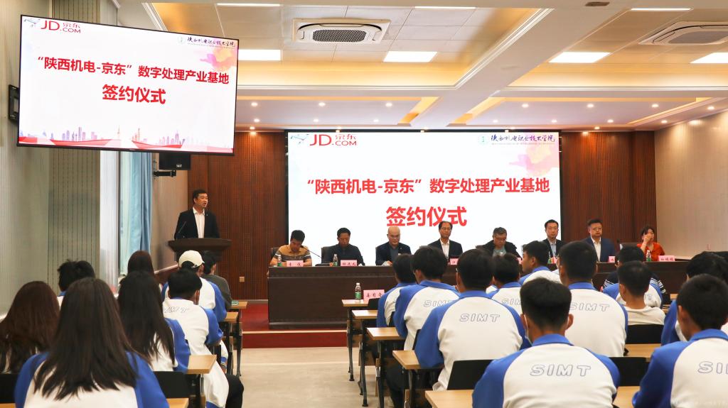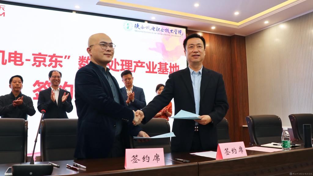 5月25日上午,陕西机电职业技术学院与京东集团共建数字处理产业基地签约仪式在陕西机电职业技术学院蟠龙校区成功举行。出席本次签约仪式的政府代表有宝鸡市招商局副局长索双海、宝鸡市招商局调研员兼项目科长杜进文、蟠龙新区招商局长李俊。出席仪式的企业代表有陕西海燃数智信息科技有限公司董事长李金泽、副董事长陈肖霖。出席仪式的学校代表有党委书记伊逊智,党委委员、副校长张克,及教务处、校企合作处、电子与信息学院等部门负责人。本次签约仪式由电子与信息学院院长姜有奇主持。