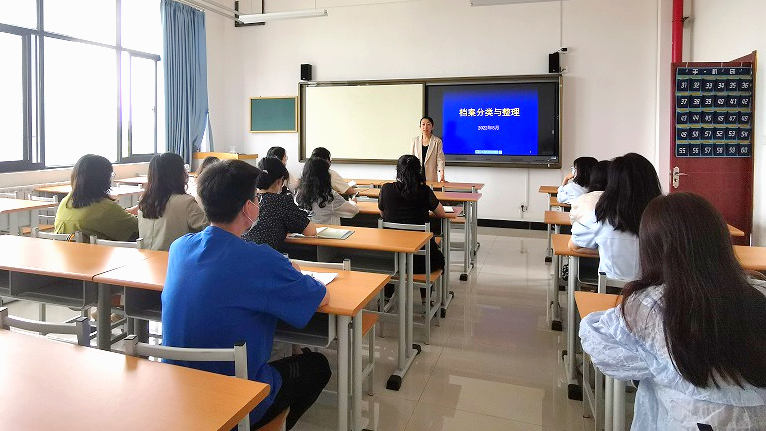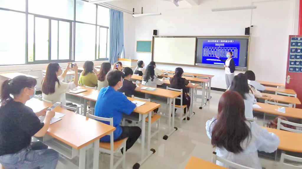 随后,档案室教师闫瑶瑶以《档案的分类与整理》为主题,从档案的收集、分类、立卷、移交等工作进行了业务指导,对归档工作提出了具体要求。通过培训,与会人员开阔了理论视野,增强了档案意识,强化了责任担当,为学校档案管理工作规范有序开展打下了基础。