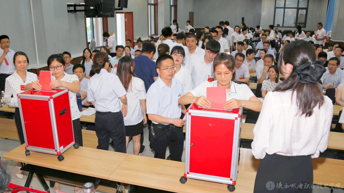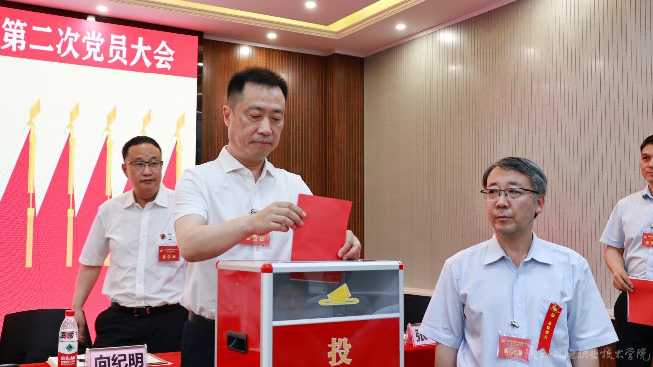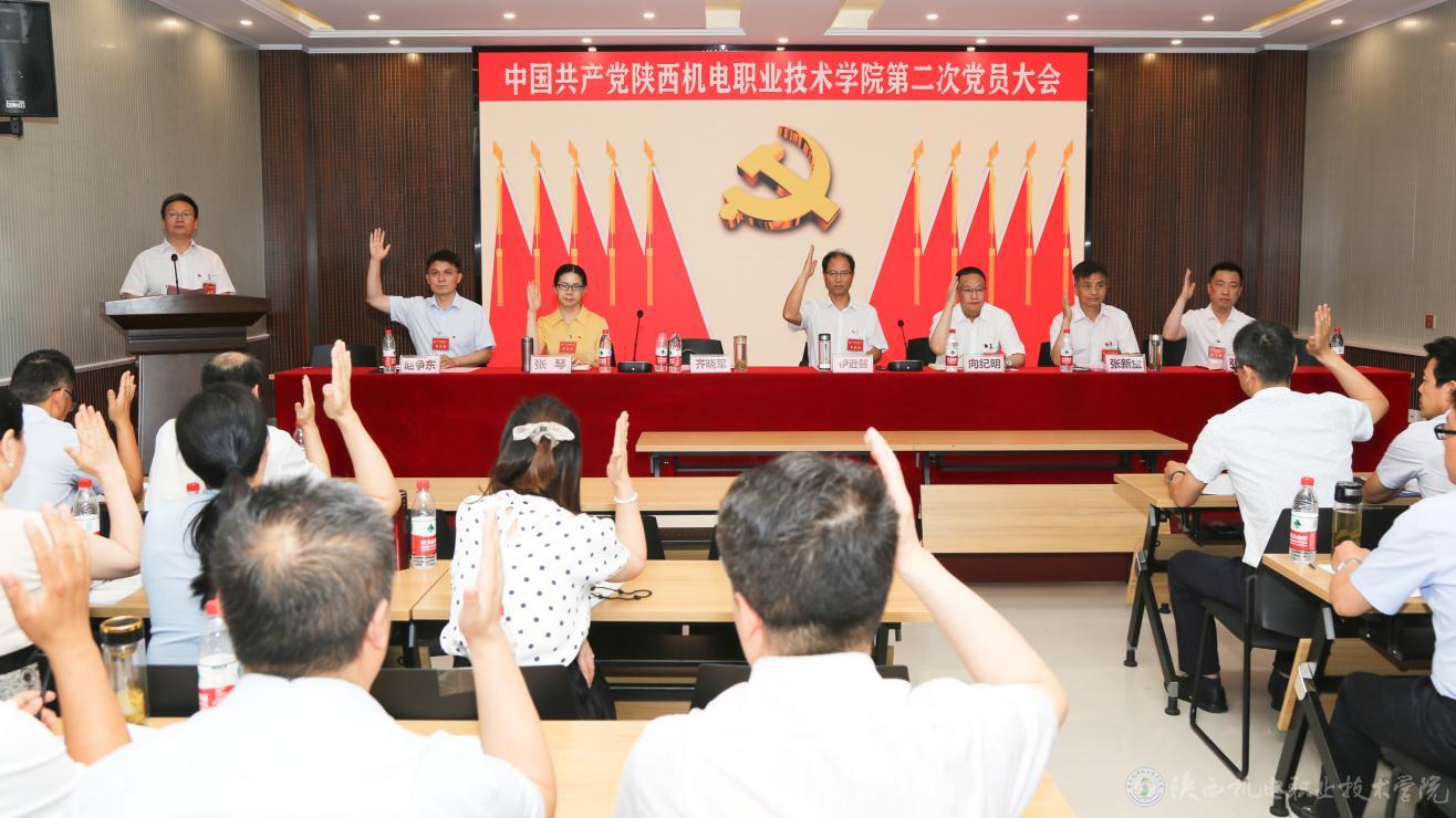 大会以无记名投票差额选举的方式选举产生了中国共产党陕西机电职业技术学院第二届委员会和第二届纪律检查委员会。以举手表决的方式通过了学校党委工作报告决议、纪委工作报告决议及党费收缴和使用、管理情况报告决议。选举伊逊智、向纪明、齐晓军、张琴、张克、赵争东、李明等7名同志为新一届党委委员,齐晓军、王芙蓉、罗亚军、严炜、孟发军等5名同志为新一届纪委委员。
