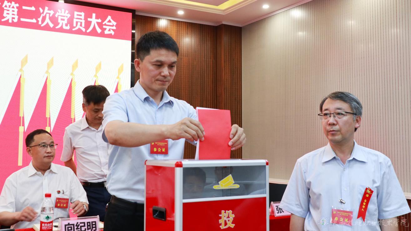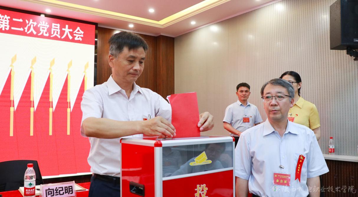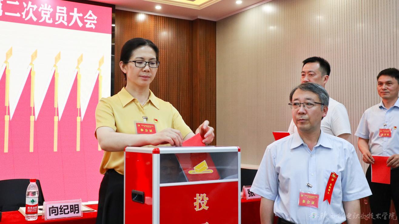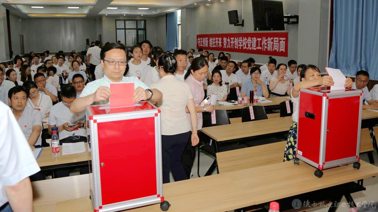 大会以无记名投票差额选举的方式选举产生了中国共产党陕西机电职业技术学院第二届委员会和第二届纪律检查委员会。以举手表决的方式通过了学校党委工作报告决议、纪委工作报告决议及党费收缴和使用、管理情况报告决议。选举伊逊智、向纪明、齐晓军、张琴、张克、赵争东、李明等7名同志为新一届党委委员,齐晓军、王芙蓉、罗亚军、严炜、孟发军等5名同志为新一届纪委委员。