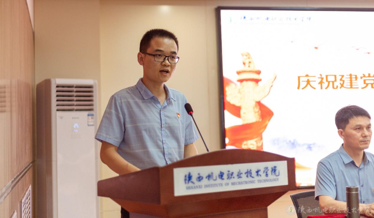 随后,优秀党员代表李鹏老师发言,他表示将继续传承和发扬好机电人艰苦朴素、敢打硬仗、奋勇争先的优良作风,切实发挥党员教师的模范带头作用。一要坚定理想信念,不断学习提升。二要立足本职工作,主动担当作为。三要勇于攻坚克难,不断开拓进取。作为学校的一份子,发挥主人翁意识,在学校党委的正确领导下,团结一致,凝心聚力,强化共同体意识,着力打造机电发展共同体、命运共同体、奋斗共同体,保持永不懈怠的精神状态和一往无前的奋斗姿态,以“踏平坎坷成大道,斗罢艰险又出发”的顽强意志,一步一个脚印的把我校建设成为特色鲜明的高水平职业院校,以崭新的成绩迎接党的二十大胜利召开!