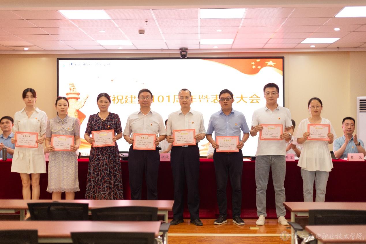 副院长张新堂宣读《关于庆祝建党101周年暨表彰“先进党支部”“优秀共产党员”“优秀党务工作者”的决定》并向3个先进党支部、32位优秀共产党员、以及14位优秀党务工作者颁奖。