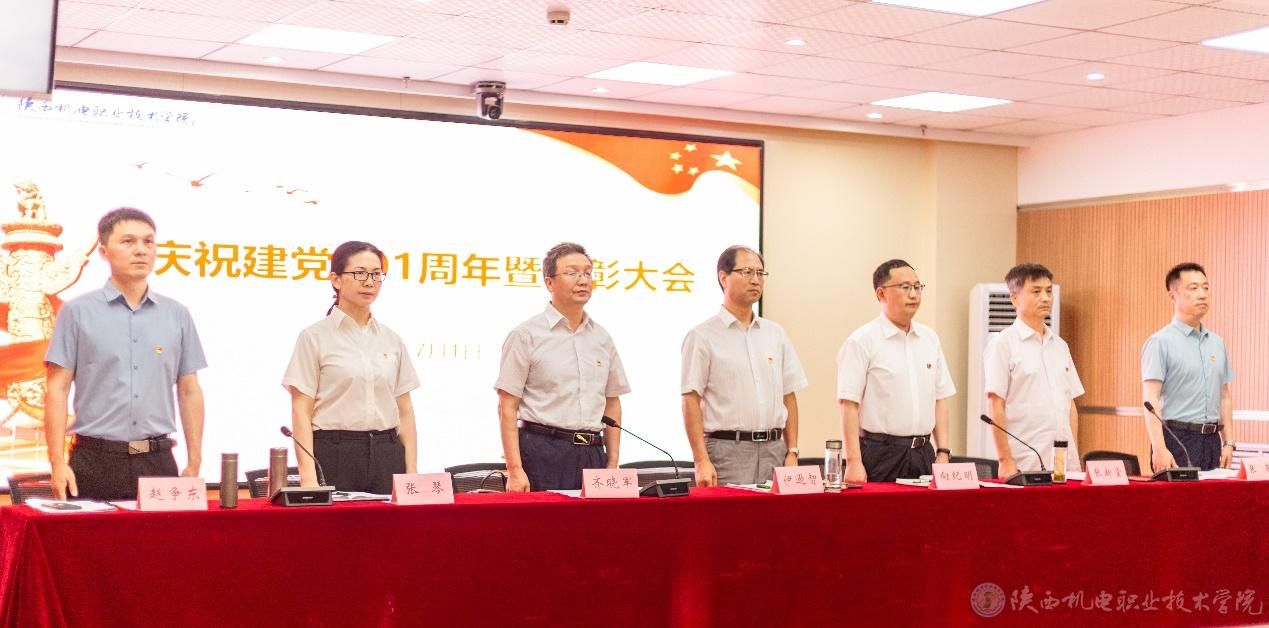 7月1日下午,陕西机电职业技术学院举行庆祝中国共产党成立101周年暨“七一”表彰大会。党委书记伊逊智,院长向纪明,纪委书记齐晓军,副院长张新堂、张琴、张克,院长助理赵争东,学校全体党员及受表彰的先进集体和先进个人参加会议。会议由齐晓军主持。