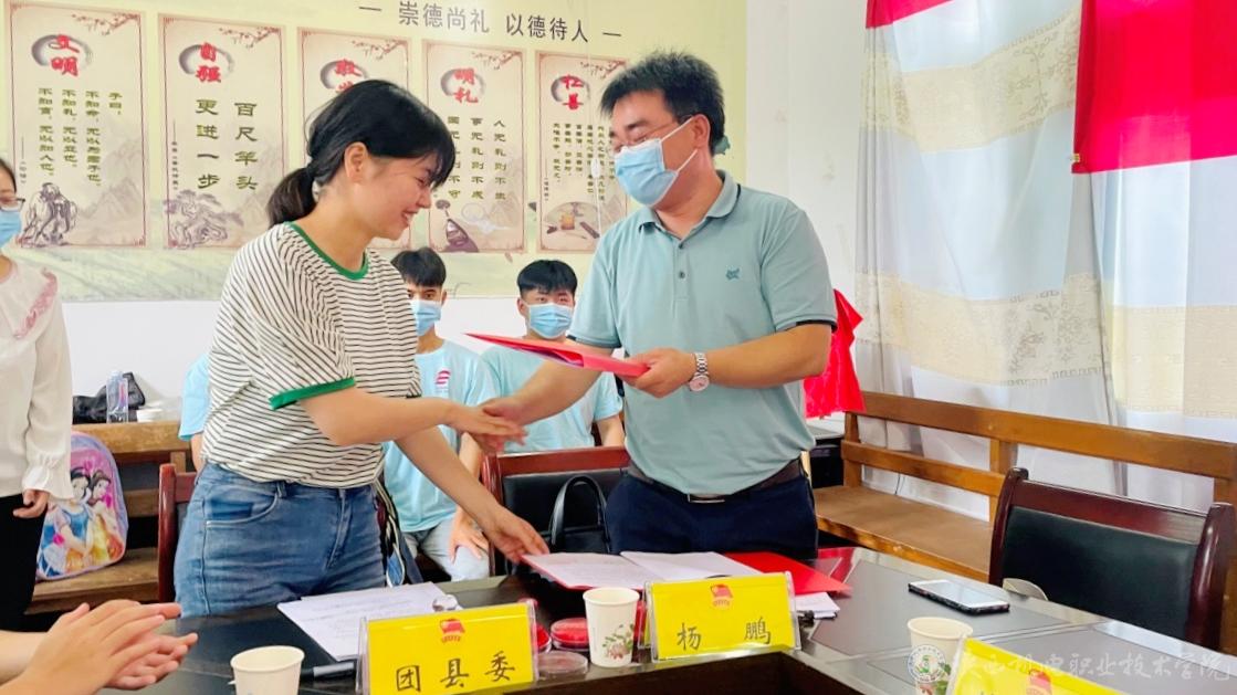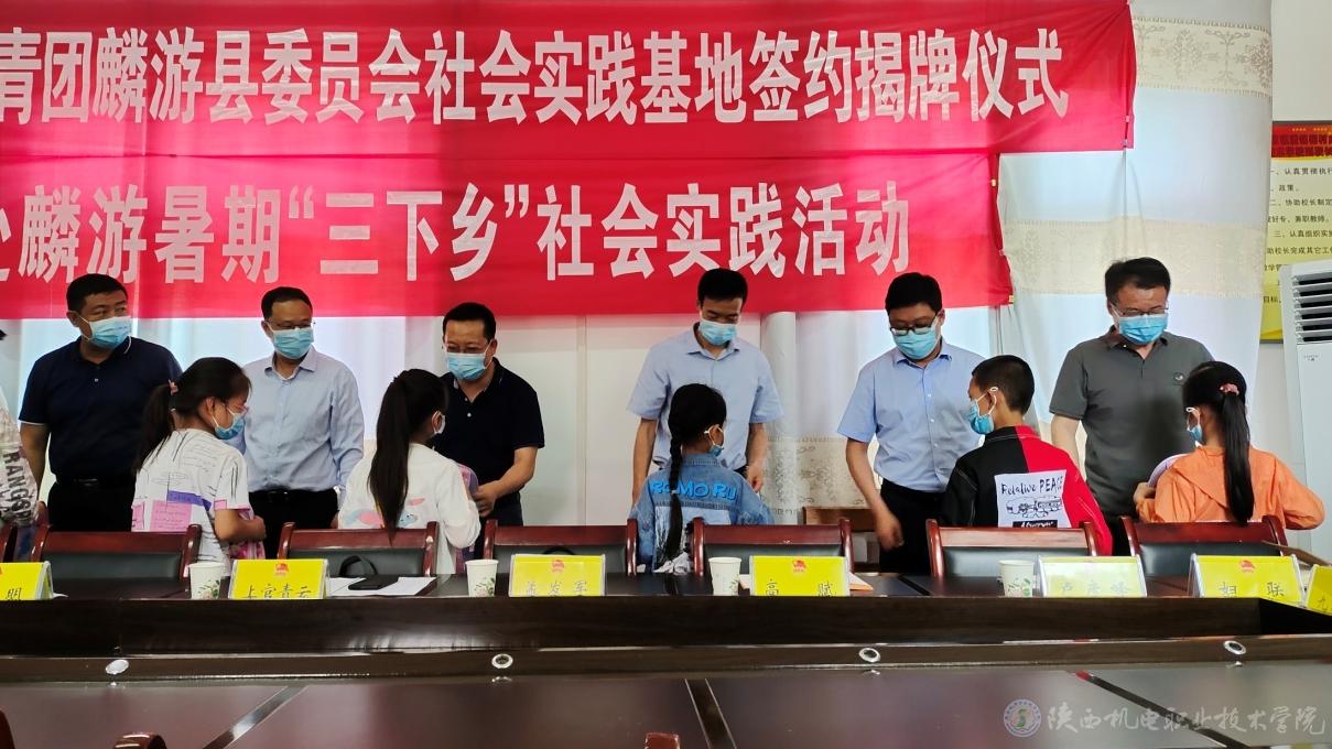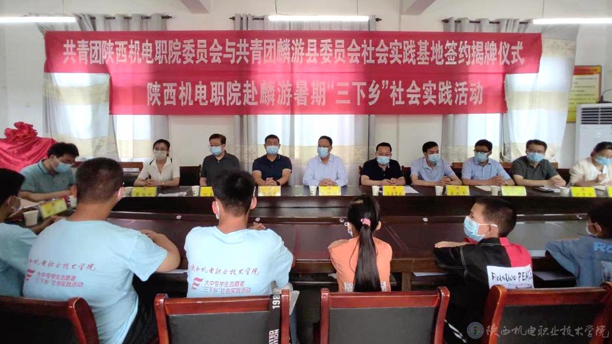 2022年7月13日,陕西机电职业技术学院在宝鸡市麟游县举行2022年社会实践基地签约挂牌仪式暨大学生志愿者暑期“三下乡”社会实践活动,麟游县委常委、纪委书记、监委主任上官青云,县政府副县长张晓军,团县委、县妇联、九成宫镇、澄铭窑村相关负责人,我校党委副书记、院长向纪明,经管与艺术学院党支部书记孟发军,汽车工程学院党支部书记何蒙辉,电子与信息学院党支部书记高赋,智能制造学院党支部书记薛媛丽,铁道工程学院副院长卢彦峰,团委书记杨鹏出席。会议由团县委副书记赵文宇主持。会上,上官青云致辞并介绍麟游县乡村振兴的概况,肯定了暑期“三下乡”社会实践活动对青年大学生的积极作用,鼓励学生将自己在校所学的专业知识和技能传播到农村基层。此次共建社会实践基地,对于双方合作交流、实现优势互补、共同促进工作具有重要意义。
