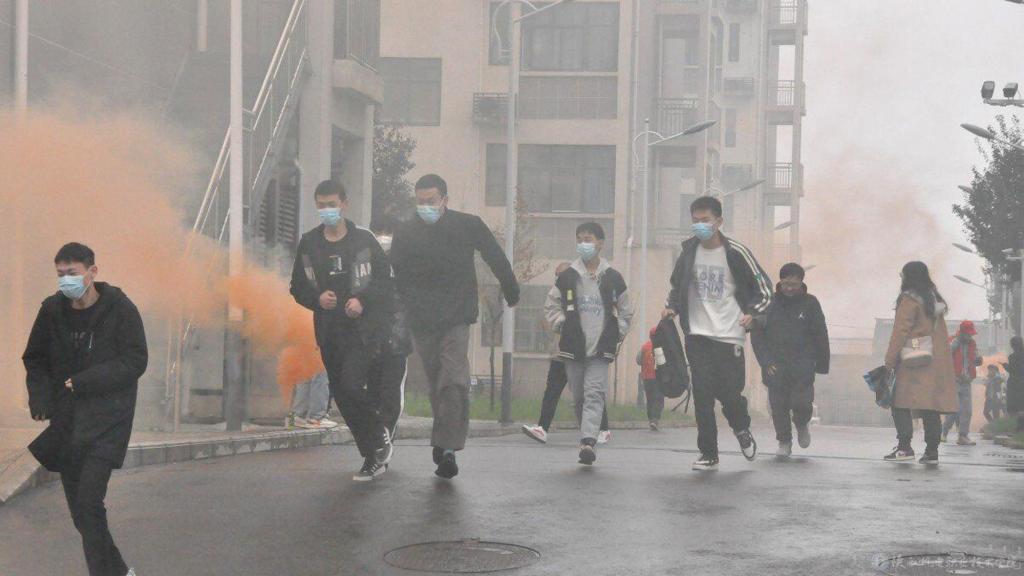 下午1点整,随着广播“宿舍楼发生火灾,请同学们立即撤离”指令的下达,全体师生开始有序撤离,蟠龙校区3000余名师生全部安全疏散完毕总耗时3分50秒。