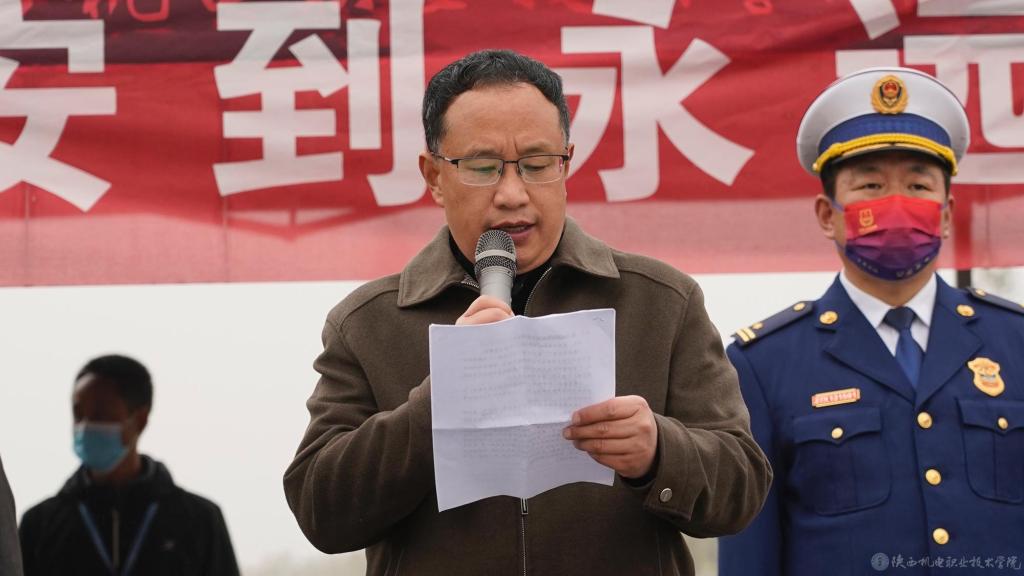 11月9日下午1点,2022年陕西机电职业技术学院联合宝鸡市公安局、宝鸡市金台消防救援大队在蟠龙校区龙池大道举行全校消防应急逃生演练。宝鸡市公安局经文保支队雷战卫支队长、金台消防救援大队黄兴利大队长、金台分局经文保大队党斌大队长及学院党委书记伊逊智,党委副书记、院长向纪明,党委副书记、纪委书记齐晓军,副院长张新堂及宣传部部长李明出席本次演练活动,活动由保卫处副处长常小凯主持。