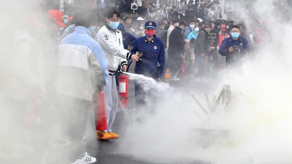 随后有序开展了消防趣味运动会、消防灭火实战演练、消防器材展等互动环节,到场的消防员们在现场言传身教,为同学们展示了不同种类灭火器的使用方法并普及相关消防知识,同学们也在现场手拿灭火器进行实操。使学生们亲身体验了消防员工作的辛苦,同时对消防安全规范有了更进一步的了解。