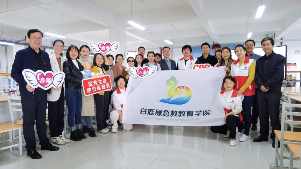 白鹿原急救教育学院5名应急救护师采用讲解和实操相结合的方式,就徒手心肺复苏、AED的使用、气道异物梗阻的急救方法进行了培训。