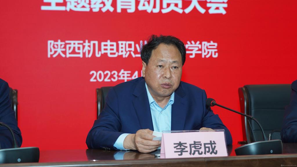 4月20日上午,陕西机电职业技术学院在蟠龙校区博学楼111会议室召开学习贯彻习近平新时代中国特色社会主义思想主题教育动员大会,全面贯彻党的二十大精神,深入学习贯彻习近平总书记在中央主题教育工作会议上的重要讲话精神,对全校深入开展主题教育进行动员部署。校党委书记伊逊智作动员讲话,省委教育工委、省教育厅主题教育第一巡回指导组组长李虎成作指导讲话。校党委副书记、院长向纪明主持会议。