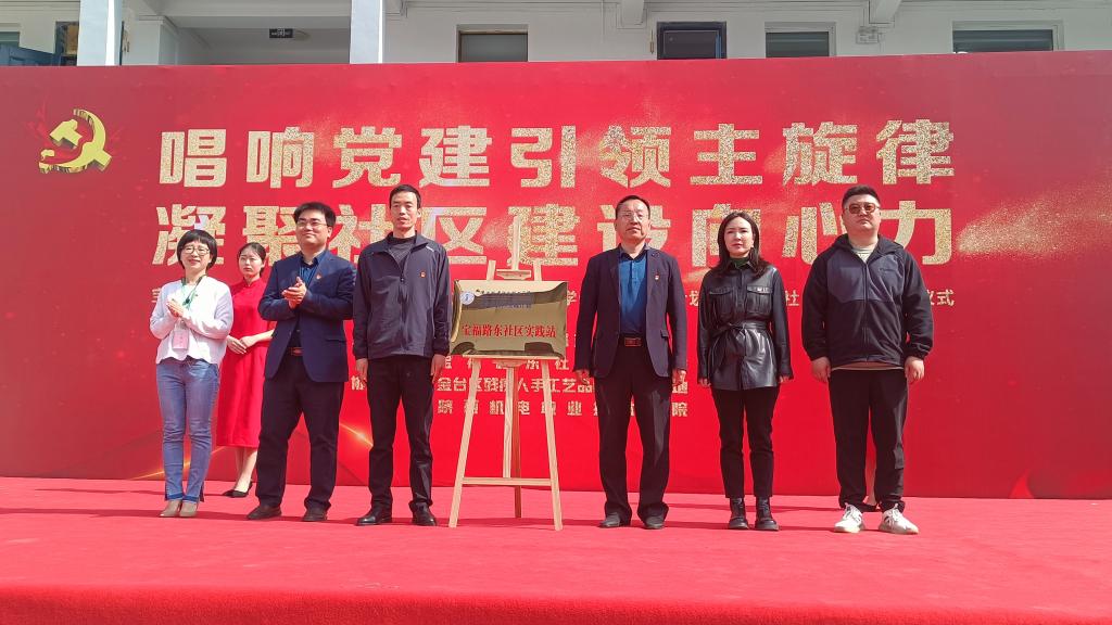 为深入贯彻落实团中央《共青团促进大学生就业行动之大学生社区实践计划工作指引》文件精神,大力探索学校“九维育人”模式之实践育人,4月26日上午,我校大学生社区实践计划揭牌仪式在宝福路东社区党群服务中心举行。活动以“唱响党建引领主旋律 凝聚社区建设向心力”为主题,金台区人大常委会副主任张宝来、金台区民政局副局长王世鹏、金台团区委副书记张丽华、西关街道党工委书记李秋炎、西关街道办公室副主任巨峰、我校经管与艺术学院党支部书记孟发军、校团委书记杨鹏及学生代表、社区群众300余人共同参加揭牌仪式。