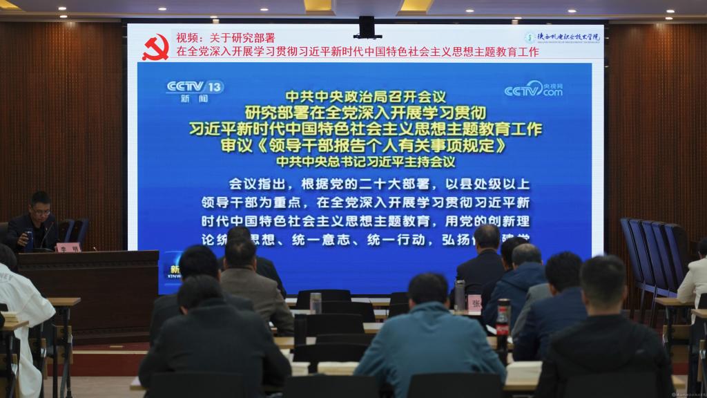 为深入贯彻习近平总书记、党中央决策部署,推动主题教育走深走实。4月25日下午,陕西机电职业技术学院4月份党委理论学习中心组(扩大)会议在蟠龙校区举行。党委委员、宣传部长李明主持中心组(扩大)会议,党委书记伊逊智主持研讨并讲话。全体中层以上领导干部参会。