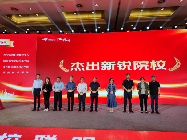 活动现场,张克代表我校领取了“杰出新锐院校”奖项。我校与京东集团自2022年5月开始合作,主要建立了数字处理产业基地、筹建京东数字技术产业学院项目,开展岗位实习等。该奖项的获得是京东集团对双方开展校企合作、产教融合工作的高度肯定。