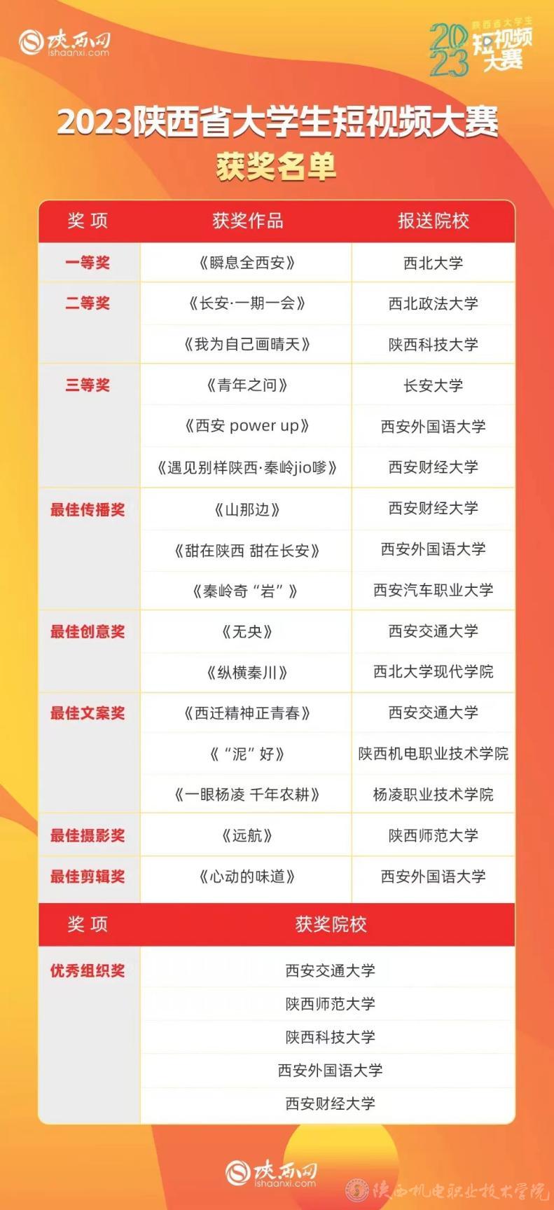 近日,由陕西省委网信办指导,西安市委网信办、当代融媒体研究院主办,陕西网承办的2023陕西省大学生短视频大赛颁奖典礼在西安交通大学兴庆校区举行。由我校铁道工程学院张淼清老师指导,21软件技术2赵培硕、22人工智能李嘉琦、22铁道运管2何小转、21网络技术1王倍宁四位同学主创作品《“泥”好》荣获最佳文案奖。