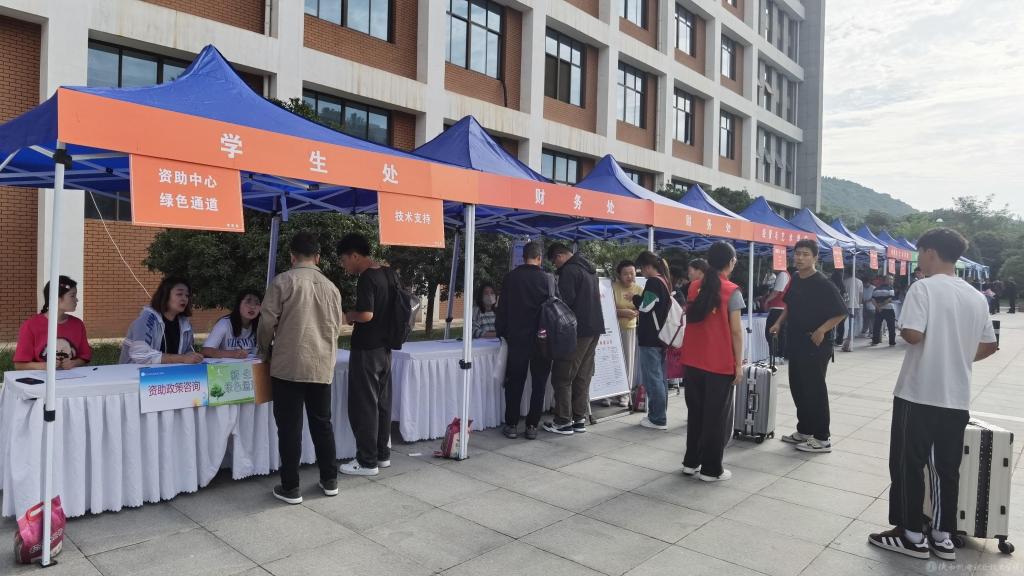 学校分别在宝鸡火车站、高铁南站、汽车高速客运中心等站点安排爱心接送直达车,有序引导,确保新生平安到校。各报到点,志愿者们热情地帮助新生搬运行李,引导完成报到手续、物资领取、寝室入住等全部流程。设立“绿色通道”,确保家庭经济困难学生顺利入学。迎新现场洋溢着青春的气息,各学院及服务点的迎新帐篷在阳光下显得格外耀眼,趣味打卡点吸引新生们打卡合影、记录入学首日的美好瞬间,校园内充满了生机与活力。