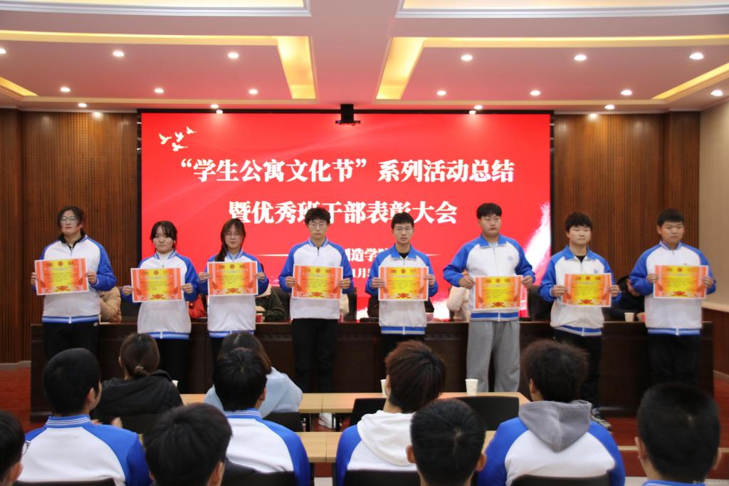 经过评比,智能制造学院荣获“优秀组织奖”,全校共评选出“文明宿舍”242间、文明宿舍舍长242人、“和谐公寓·多彩生活”短视频征集获奖作品10个、“我是公寓管理员”岗位体验活动优秀个人11名,进行了表彰奖励。
