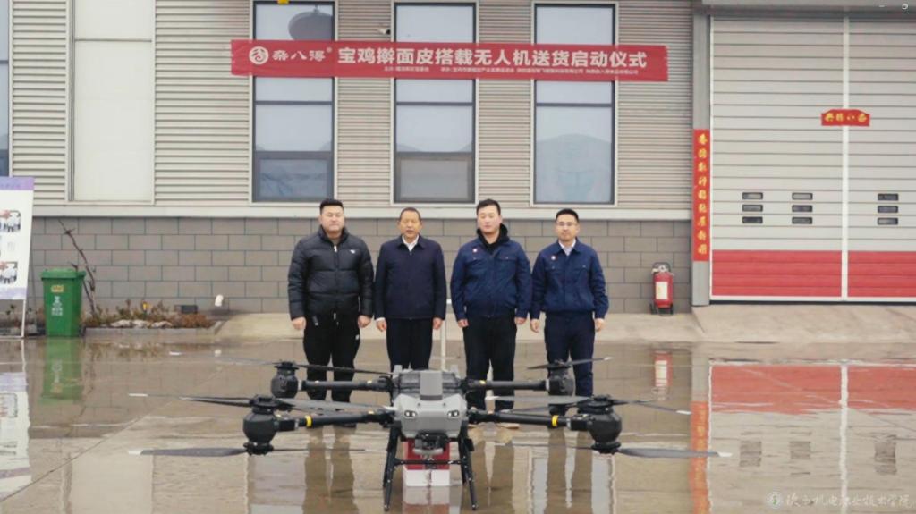 为响应中央财经委员会第四次会议号召,鼓励发展与平台经济、低空经济、无人驾驶等结合的物流新模式,陕西机电职业技术学院无人机产业学院学生利用无人机的优势,为宝鸡擀面皮配送带来创新。