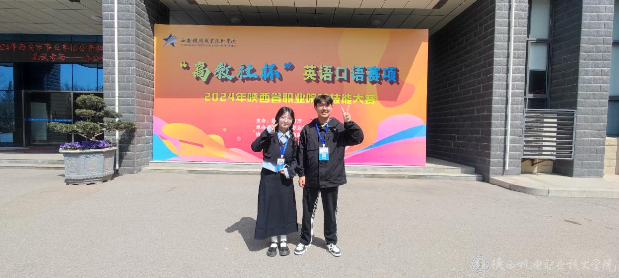 3月29—31日,2024年陕西省高职院校技能大赛英语口语赛项在西安铁路职业技术学院举行。陕西机电职业技术学院朱芯漫(23电气技术2班,指导教师徐红梅)、杨灿(23机电技术2班,指导教师宋冰心)同学双双荣获三等奖。