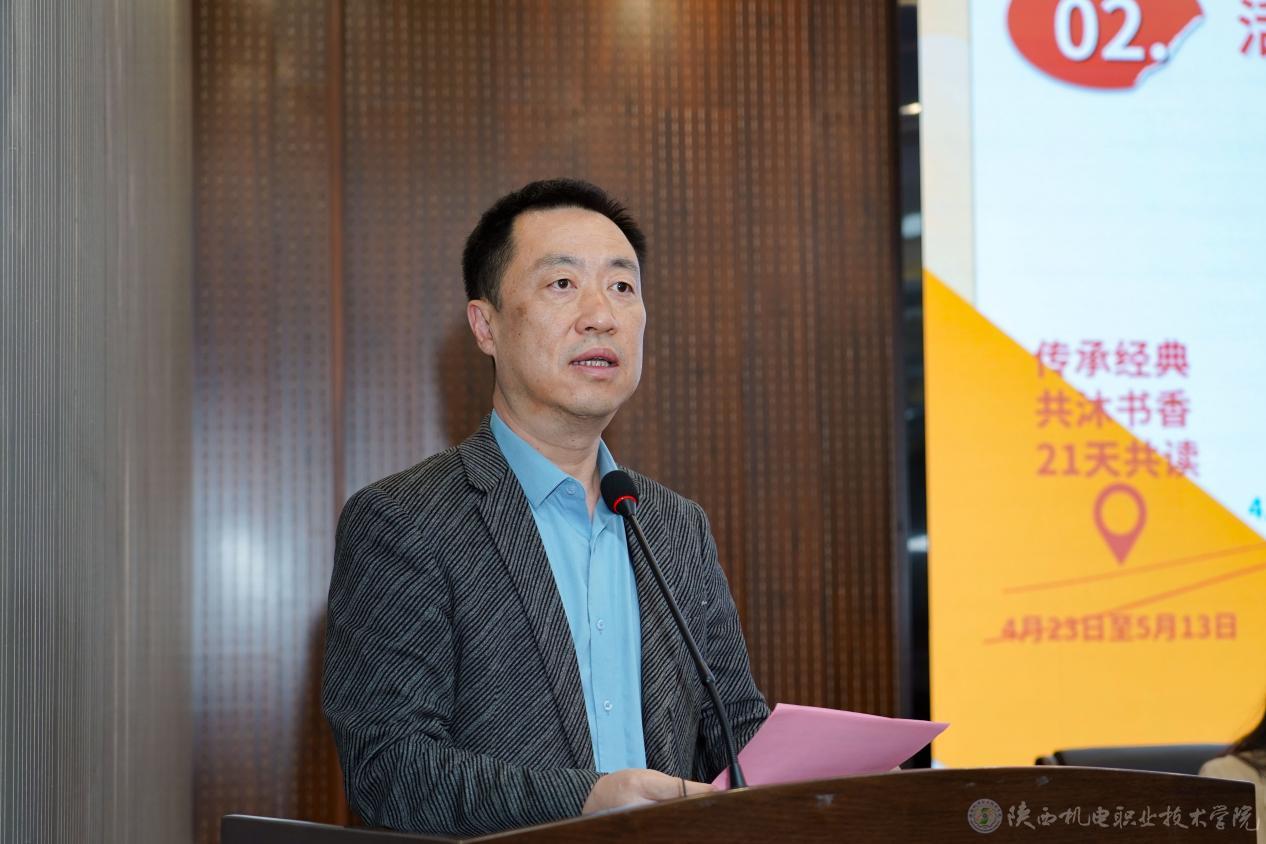 张克副院长宣读了《陕西机电职业技术学院4·23世界读书日暨第六届读书月活动方案》。他详细阐述了活动的目的、内容、形式及预期效果,并特别强调了活动的意义,旨在通过丰富多彩的阅读活动,推动校园阅读文化的深入发展,提升师生的阅读素养和综合素质。