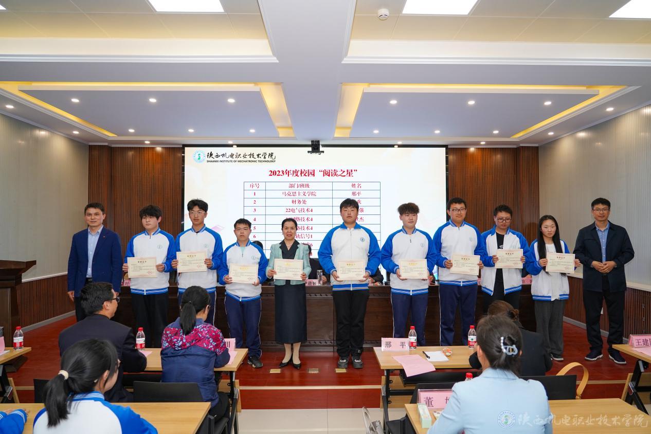 张琴副书记宣读了《陕西机电职业技术学院关于表彰2023年度“阅读之星”的决定》。赵争东、李明共同为这些荣获“阅读之星”荣誉称号的师生颁发证书。
