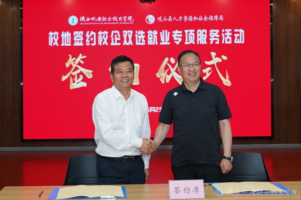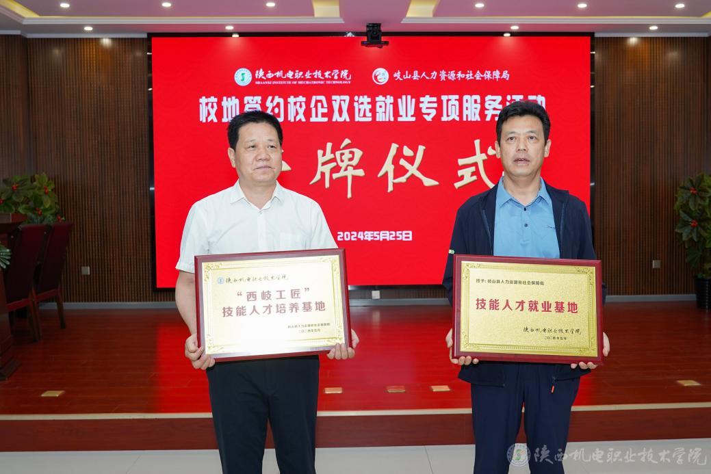 最后,双方本着“校地携手、双向赋能”的原则,签订了校地人才战略合作协议,互相授与“技能人才就业基地”“‘西岐工匠’技能人才培养基地”。希望通过该基地,能植根企业需求,构建多样化人才培养体系,大力培养应用型人才,为推动区域经济全面发展提供坚实有力的人才支撑和智力保障。