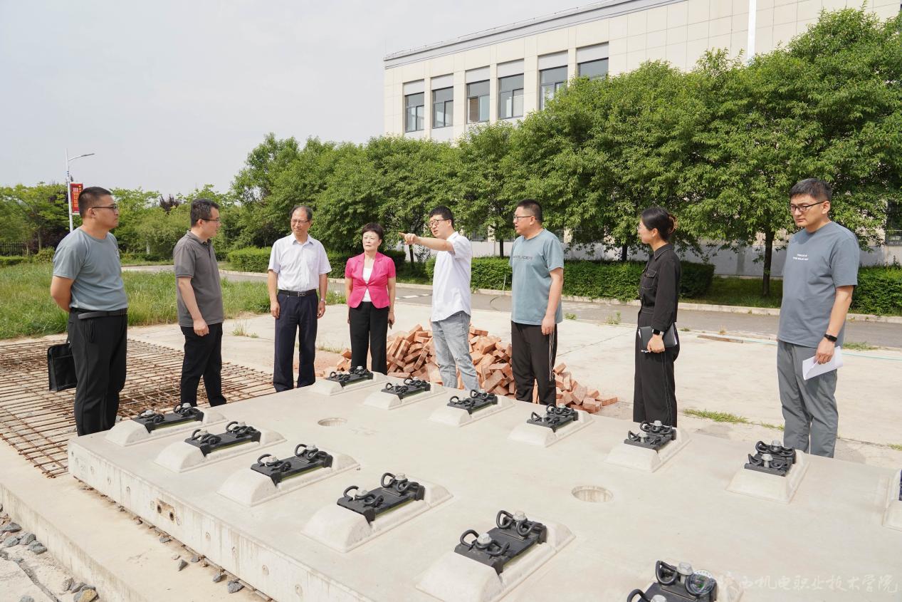李慧玲一行参观了铁道工程学院城轨智能运输实训室、高铁精密测量仪器室、土木工程材料实训中心、铁道工程综合实训基地等实训场所。
