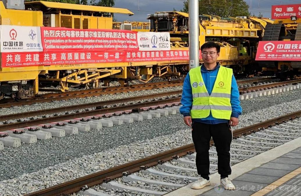 6月初,中国与中东欧国家合作的“一带一路”旗舰项目匈塞铁路(匈牙利—塞尔维亚)塞尔维亚境内诺苏段轨道全部贯通,标志着匈塞铁路建设取得新的重大进展,为下一步全线开通运营奠定坚实基础。在为匈塞铁路建设作出贡献的众多青年才俊中,有陕西机电职业技术学院学子的身影,他就是2022届铁道工程学院铁道信号自动控制专业的优秀毕业生吴海鹏。