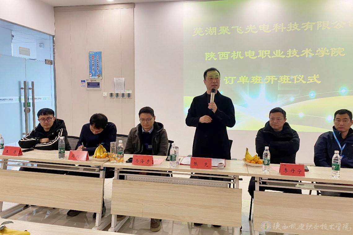 12月11日,聚飞光电订单班开班仪式在安徽芜湖聚飞光电科技有限公司举行,陕西机电职业技术学院党委委员、副院长张克出席仪式。