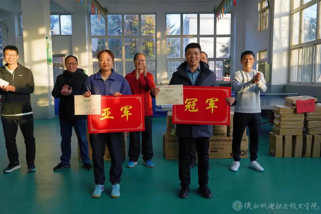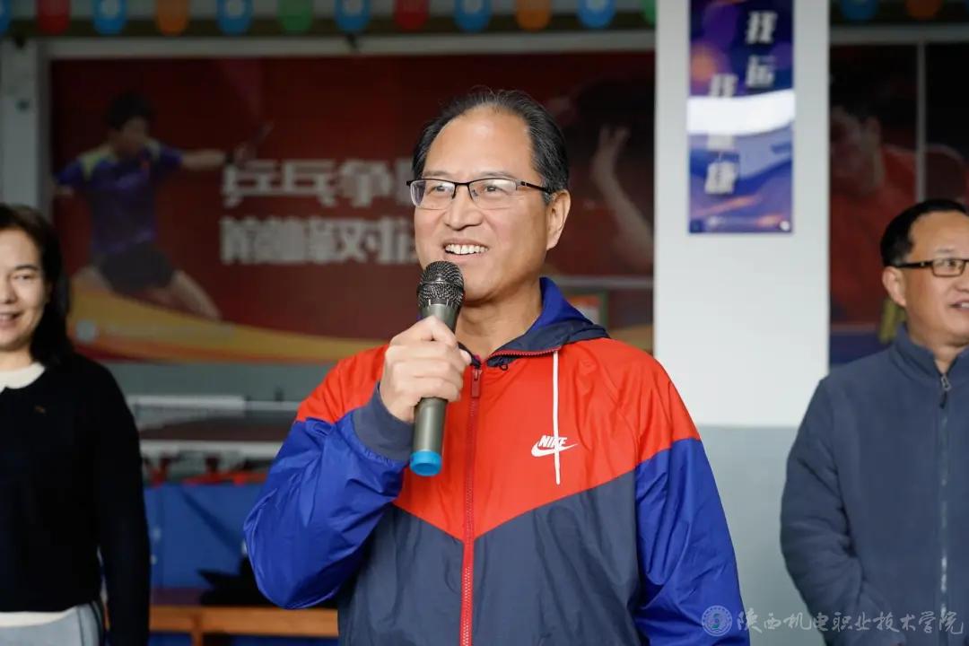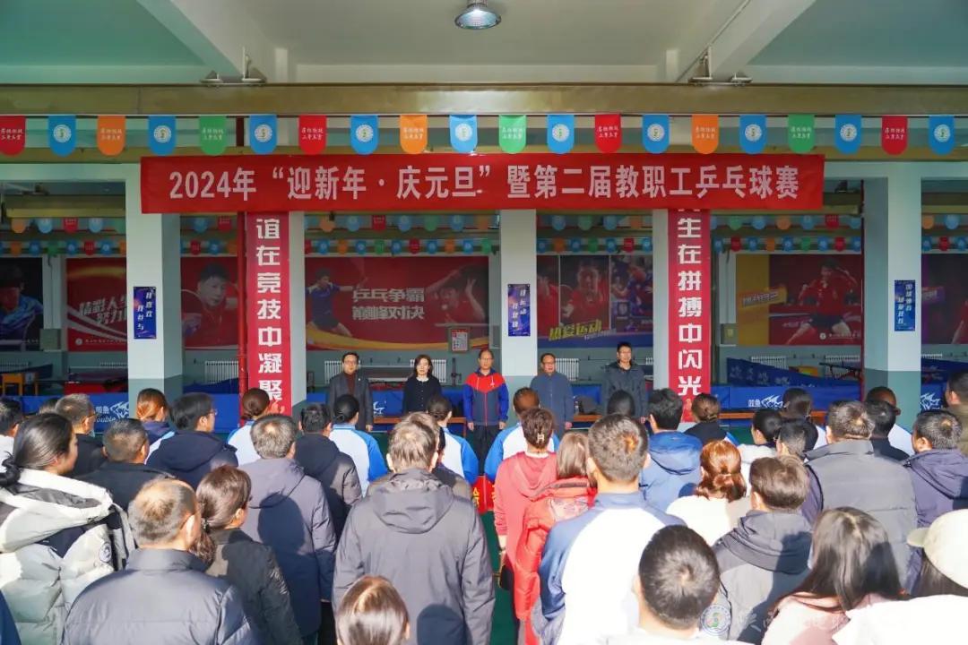 12月26日下午,陕西机电职业技术学院2024年“迎新年·庆元旦”暨第二届教职工乒乓球赛开幕式在宝福路校区乒乓球馆开幕。校党委书记伊逊智,党委副书记、院长向纪明,党委副书记、纪委书记陈红梅,党委委员、宣传部部长、工会主席李明,党政办公室副主任、工会副主席康健出席开幕式。基础部(体育部)部长李明主持开幕式。