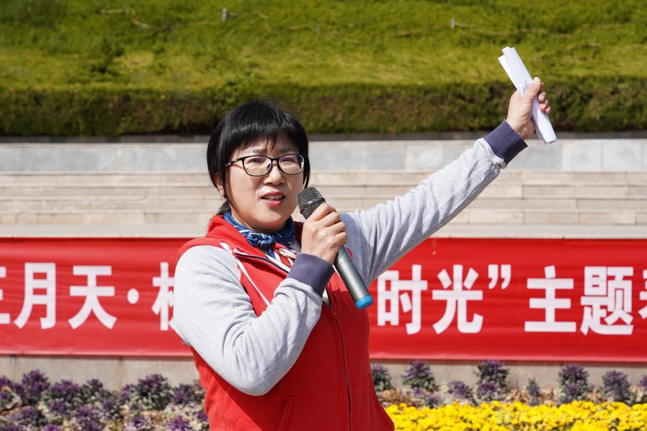 开幕式上,满春燕宣读健步活动方案。此次春日健步走活动全程约4公里,设“‘翠微云栈’—观景台”、“青年广场—观景台”两条线路,教师可任选其一。沿途一步一景,春花烂漫、绿树成荫,微风轻拂。教师们锻炼身体的同时,也能尽情领略最美春色。满春燕号召大家践行“用脚步丈量春天,用文明装点风景”的无痕健步理念。
