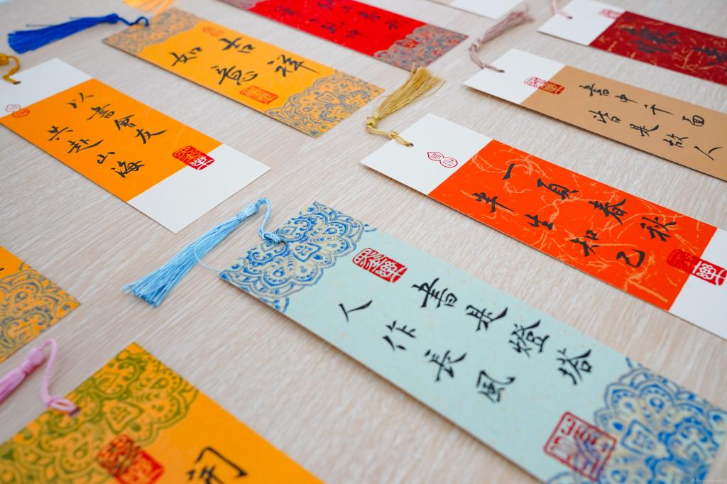 工作人员为参会教师发放手写书签