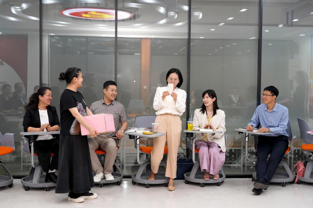 分享交流环节,陈红梅以个人学习、工作经历为引,为在场教师推荐《谁动了我的奶酪》一书,勉励青年教师破“谜题”、好学习、长才干;教师黄晓璐推荐《黄帝内经》一书。在 “书名猜猜猜” 互动游戏环节,主持人以作者名、关键词或经典句子为线索,教师们踊跃抢答,答对者收获手写书签,现场气氛热烈。读书悦享环节采用盲盒形式,教师们随机抽取他人书写的经典名言或读书体会进行朗诵并收藏,增进了情谊、拉近距离。整场活动高潮迭起,趣味十足,让教师们在轻松氛围中体验阅读之乐。
