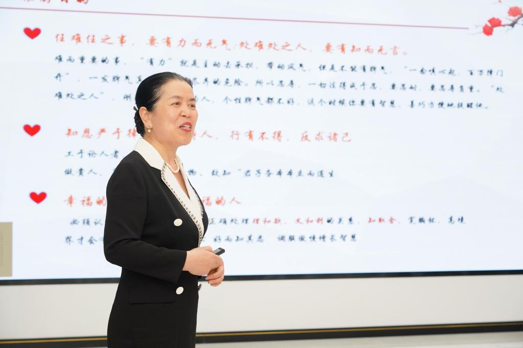 本次读书分享会特邀国际注册高级礼仪师、高级国学礼仪师、马克思主义学院督导邢平教授分享蔡礼旭老师《做孩子一生的贵人》一书。她凭借深厚专业素养与丰富阅读心得,从作者简介、背景、目录、推荐理由、目的、价值及意义七个维度深入剖析,为在场教师点亮 “心灯”,指明职教育人方向。