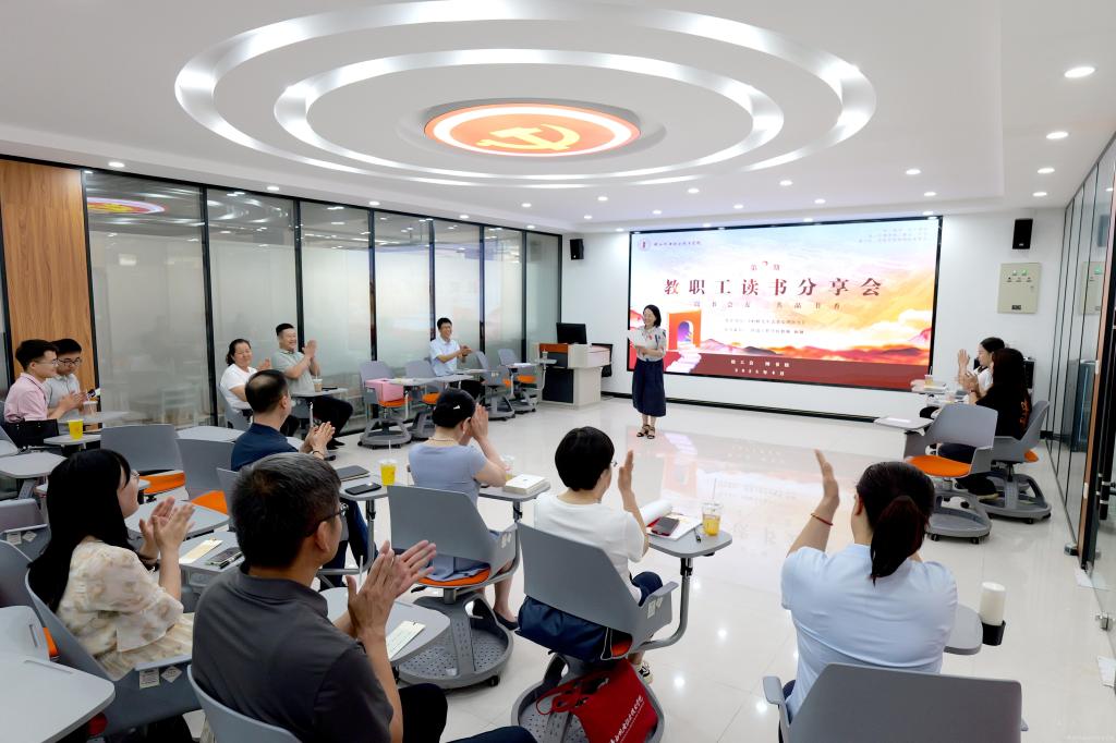 6月6日下午,我校在蟠龙校区图书馆思政课虚拟仿真教学中心成功举办了第二期读书分享会。党委委员、副院长张克,党委委员、工会主席李明及10余名读书爱好者共同参与。活动由黄可老师主持。