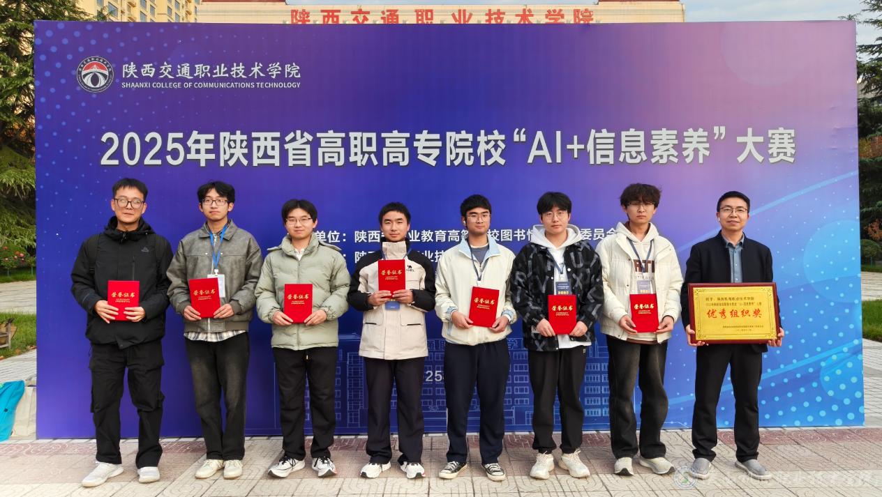 11月8日,2025年陕西省高职高专院校“AI+信息素养”大赛在陕西交通职业技术学院盛大举行。陕西机电职业技术学院2队6名选手凭借卓越的AI应用能力、数据分析能力和扎实的信息素养功底,在全省18个参赛院校36个代表队中脱颖而出,其中乘风队(队员:王责豪、曹天佑、胡小龙)获得二等奖、破浪队(队员:胡垟、刘一洋、梁欢)获得三等奖。我校在备赛过程中,统筹安排、紧密组织、精细培训,喜获“优秀组织奖”。