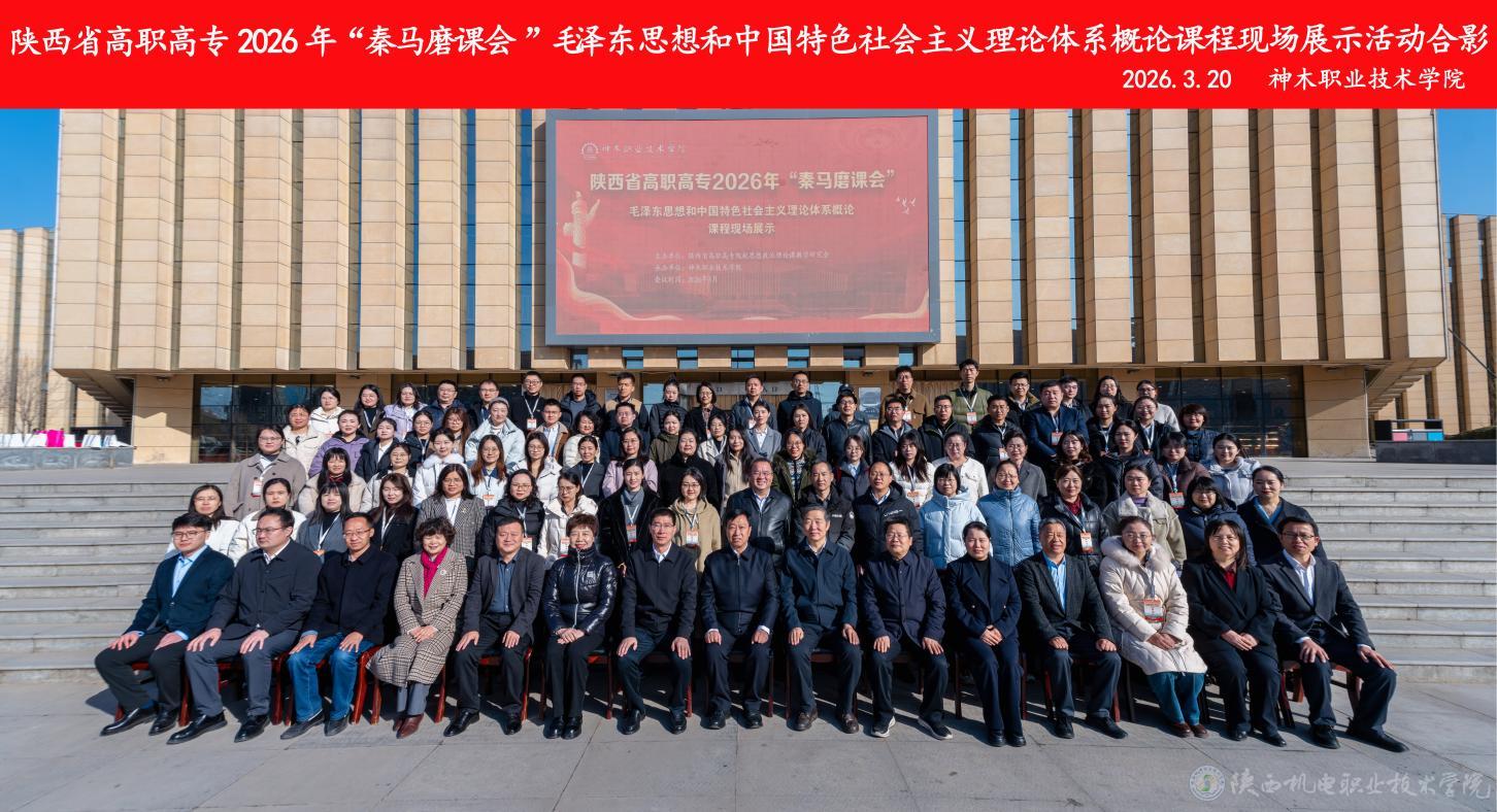为深入贯彻习近平总书记在学校思想政治理论课教师座谈会上的重要讲话精神,落实习近平总书记对学校思政课建设作出的重要指示精神,3月20日,陕西高职高专2026年“秦马磨课会”毛泽东思想和中国特色社会主义理论体系概论课程现场教学展示在神木职业技术学院举行。陕西机电职业技术学院思政课教师张春艳在现场展示环节荣获“青年教师组”一等奖。我校马克思主义学院负责人王康、青年教师代表屈婉蓉参加此次活动。